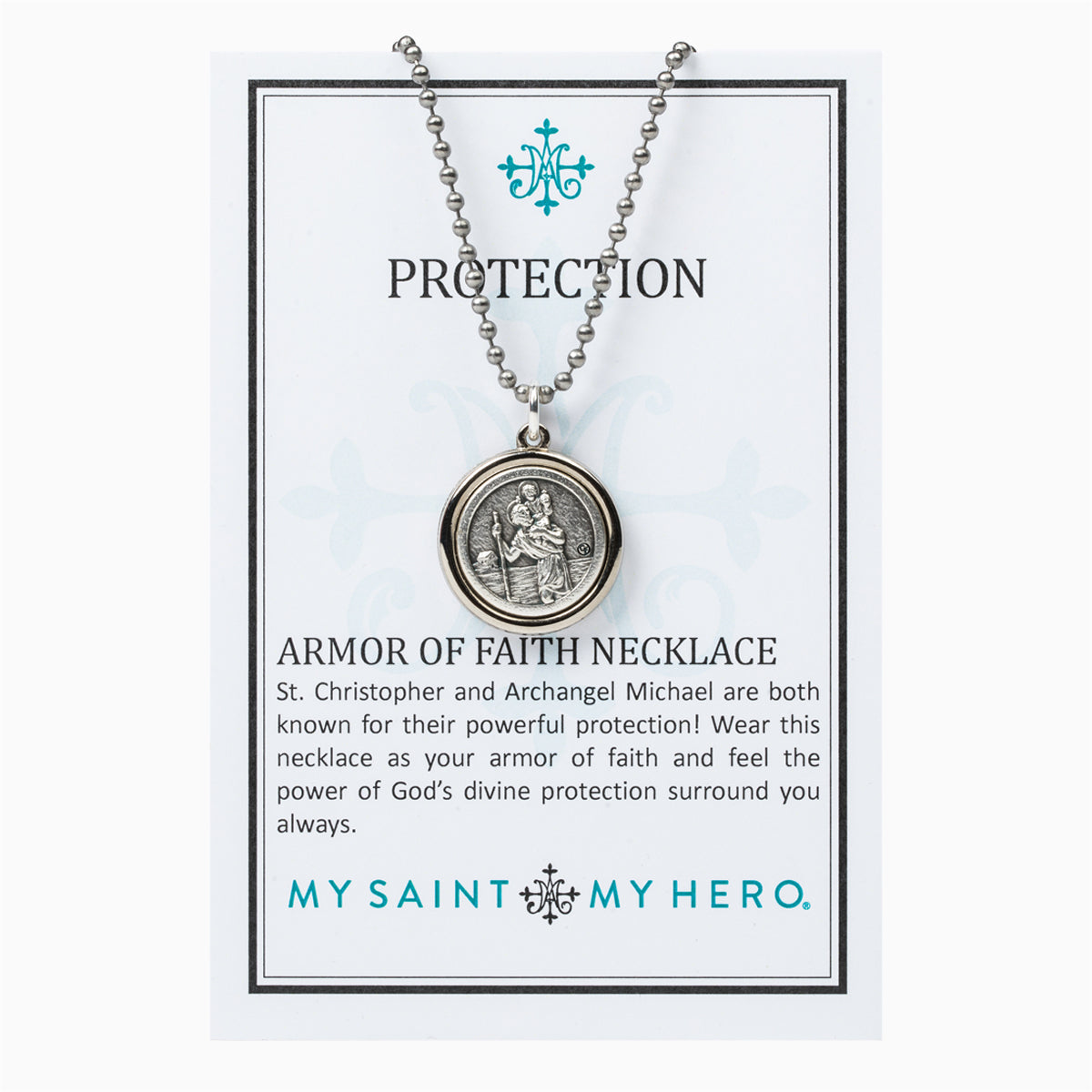 - Archangel Michael & St. Christopher Protection Armor of Faith Necklace - Bead Ball Chain comes on an inspirational card