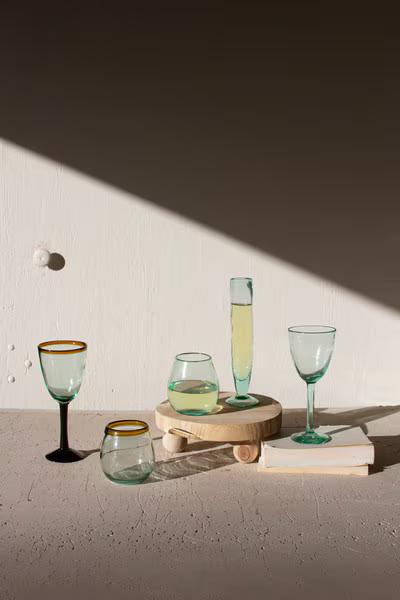 Columbian glassblowers imbue a different way to pop the bubbles with this set of six tall recycled champagne flute. Utilize these unique Champagne Flutes for an occasion, whether it be a fun night with friends and family or just celebrating the end of the week.