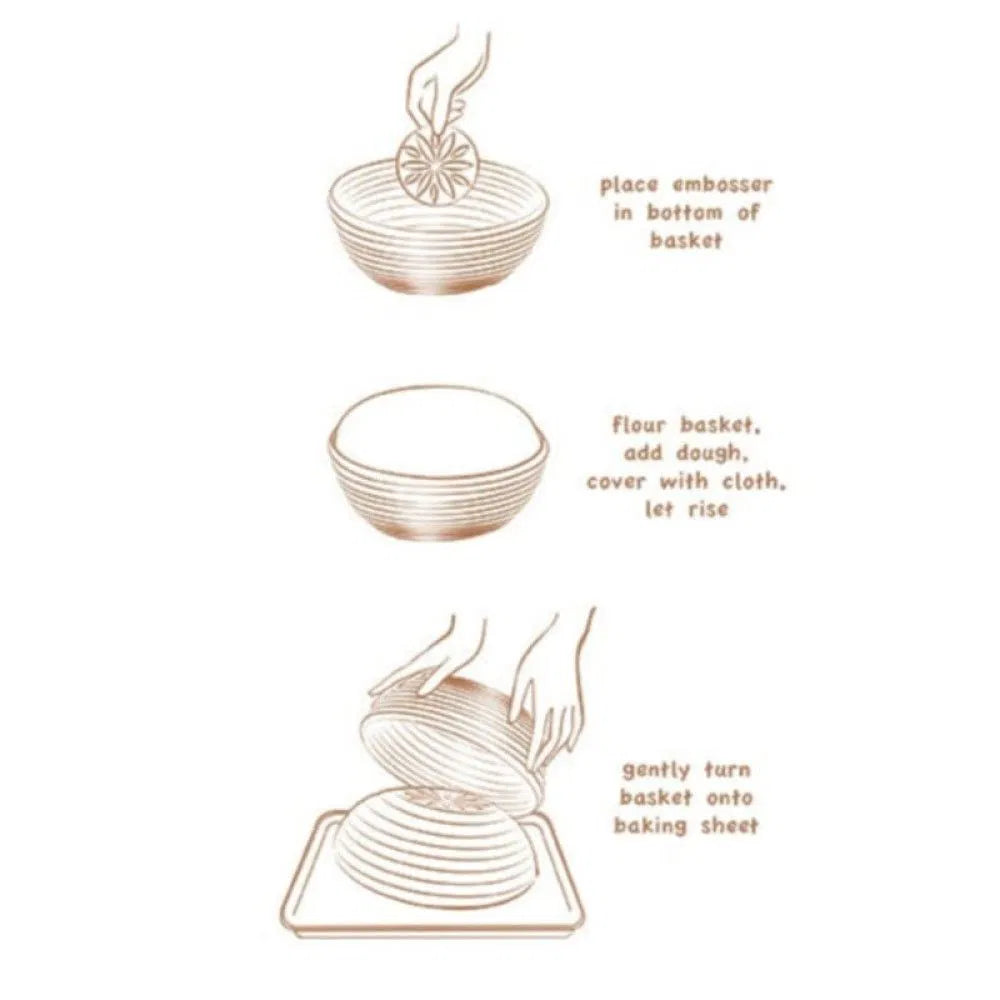 The included plastic embosser is used by placing it in the base of the bowl, then placing the dough over it. As the bread proofs, it will press the pattern into the dough and once it’s ready to bake, you have an easy, artisan-looking loaf without any fuss. Add the Proofing Basket & Embosser to your baking arsenal today and enjoy perfectly made loaves of bread in the comfort of your home!