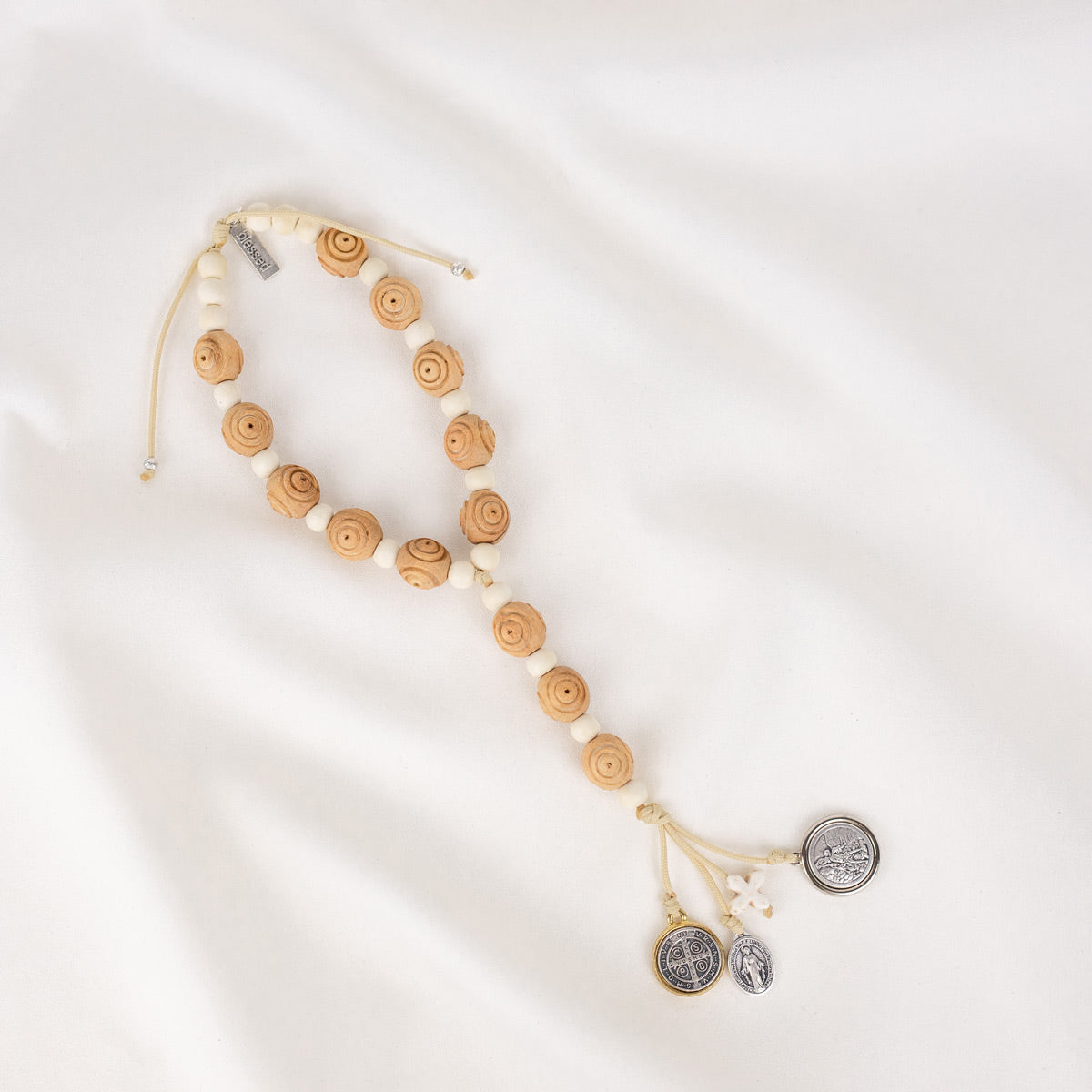 - Features a howlite cross, two-tone Benedictine medal, silver-tone Miraculous Mary Medal and a silver-tone Archangel Michael/Saint Christopher Medal, and our signature "blessed" tag