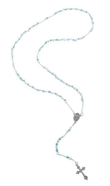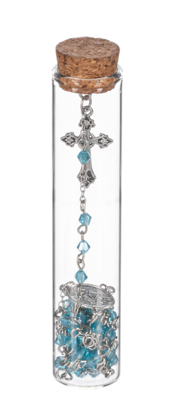 Expertly crafted for devotion, our Mother Mary Rosaries are available in clear, blue, and turquoise beads. Enhance your prayer experience with these beautifully designed rosaries. The rosary is displayed in a glass tube with a cork top.It makes a beautiful gift