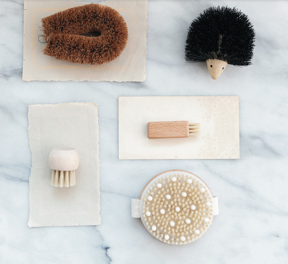 4-1/4" Round Cherry Wood Body Brush w/ Fabric Handle, Natural