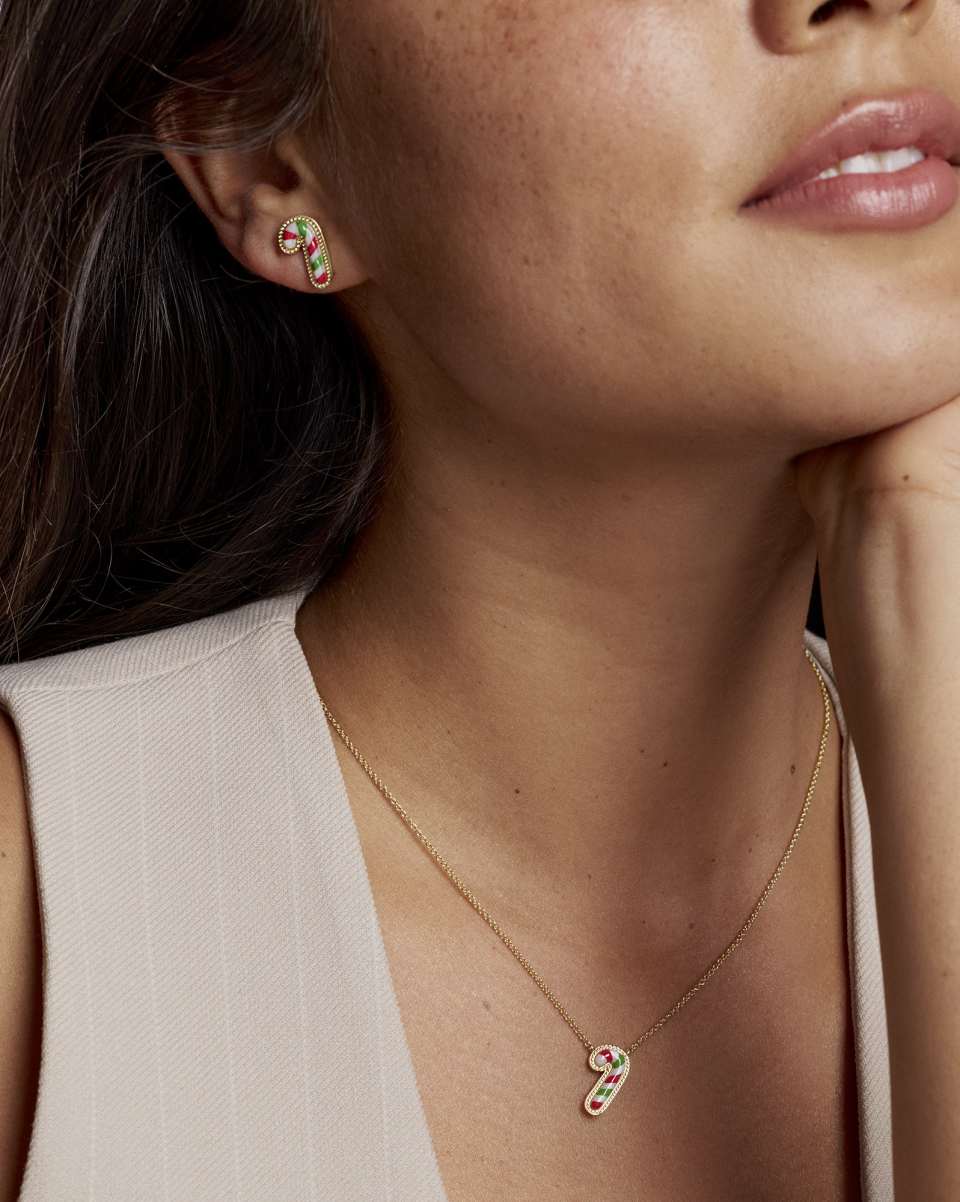 These Kendra Scott Candy Cane Pendant Earrings are the perfect festive addition to your holiday outfit. Featuring a classic candy cane design, these earrings add a touch of Christmas cheer to any look. Made with high-quality materials, these earrings are both stylish and durable.